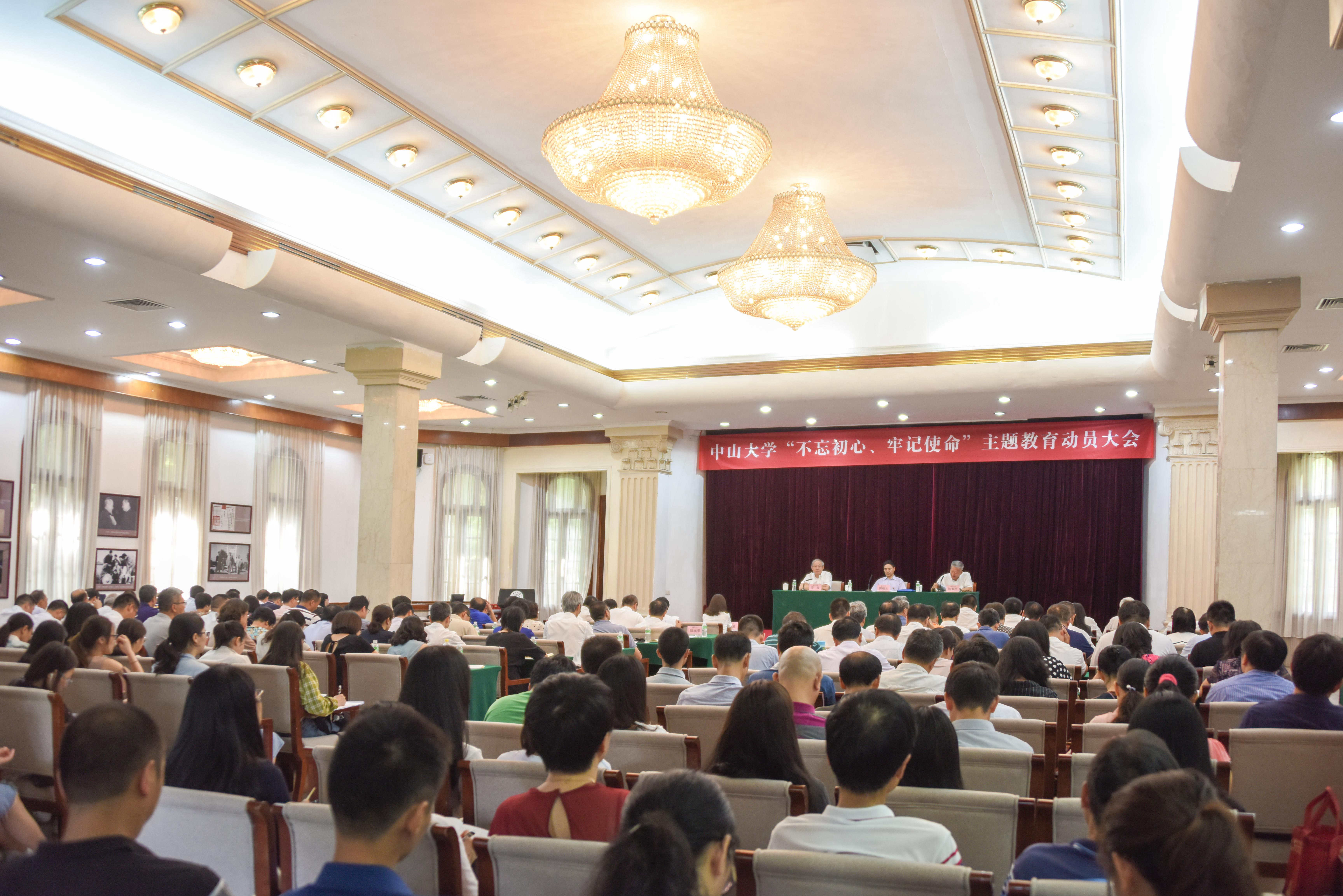 9月11日上午,我校在怀士堂召开“不忘初心、牢记使命”主题教育动员会,深入贯彻落实习近平总书记在“不忘初心、牢记使命”主题教育工作会议上的重要讲话精神,严格按照中央、教育部党组和广东省委对主题教育的部署要求,对全校主题教育进行全面动员与重点部署。中央“不忘初心、牢记使命”主题教育第三指导组副组长、教育部发展规划司副司长田福元作动员讲话,校党委书记陈春声主持会议并作工作部署,校党委副书记、校长罗俊出席会议。