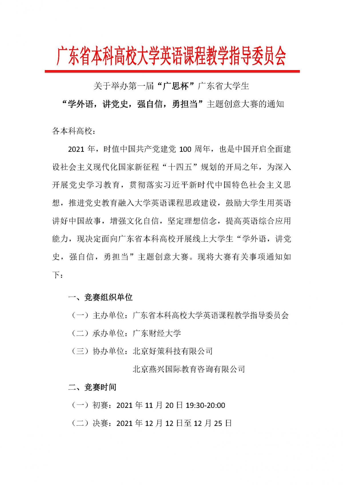 “学外语,讲党史,强自信,勇担当”主题创意大赛的通知