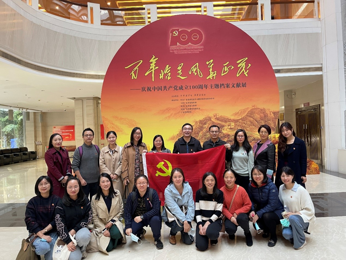 为深入学习党的百年历史,弘扬光荣传统,赓续红色血脉,12月3日下午,外国语学院外语教学中心党支部二十余名党员在联系支部的党委委员带领下,参观了由中央档案馆、新华通讯社主办,广东省委党史学习教育领导小组办公室、广东省委组织部、广东省委宣传部、广东省委党史研究室、广东省档案馆承办的“百年恰是风华正茂庆祝中国共产党成立100周年主题档案文献展”。