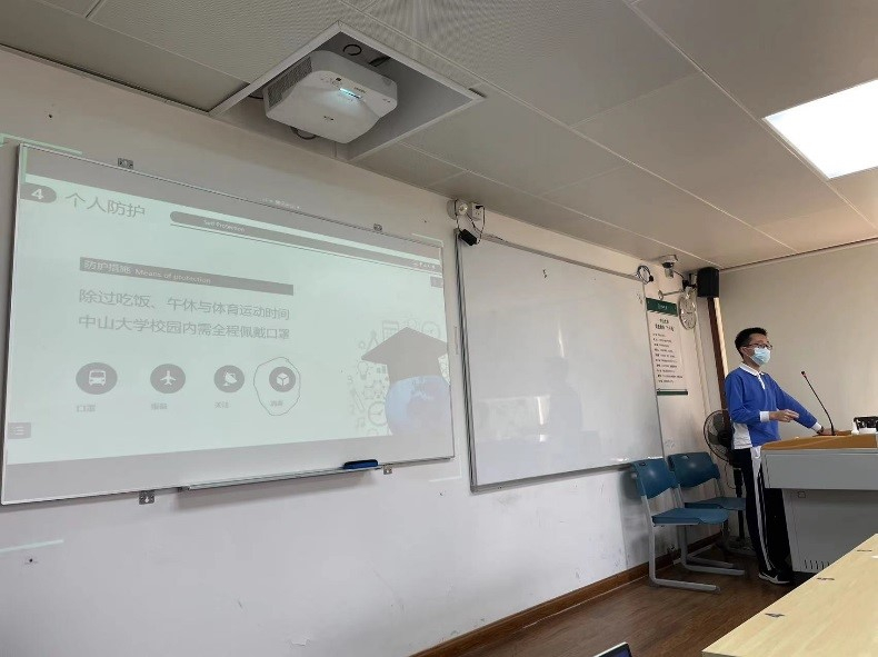 2022年3月3日,2021级英语系班会,班长肖宇成同学讲解疫情防控注意事项