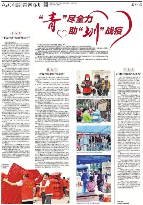 南方日报整版报道——“青”尽全力,助“圳”战疫: