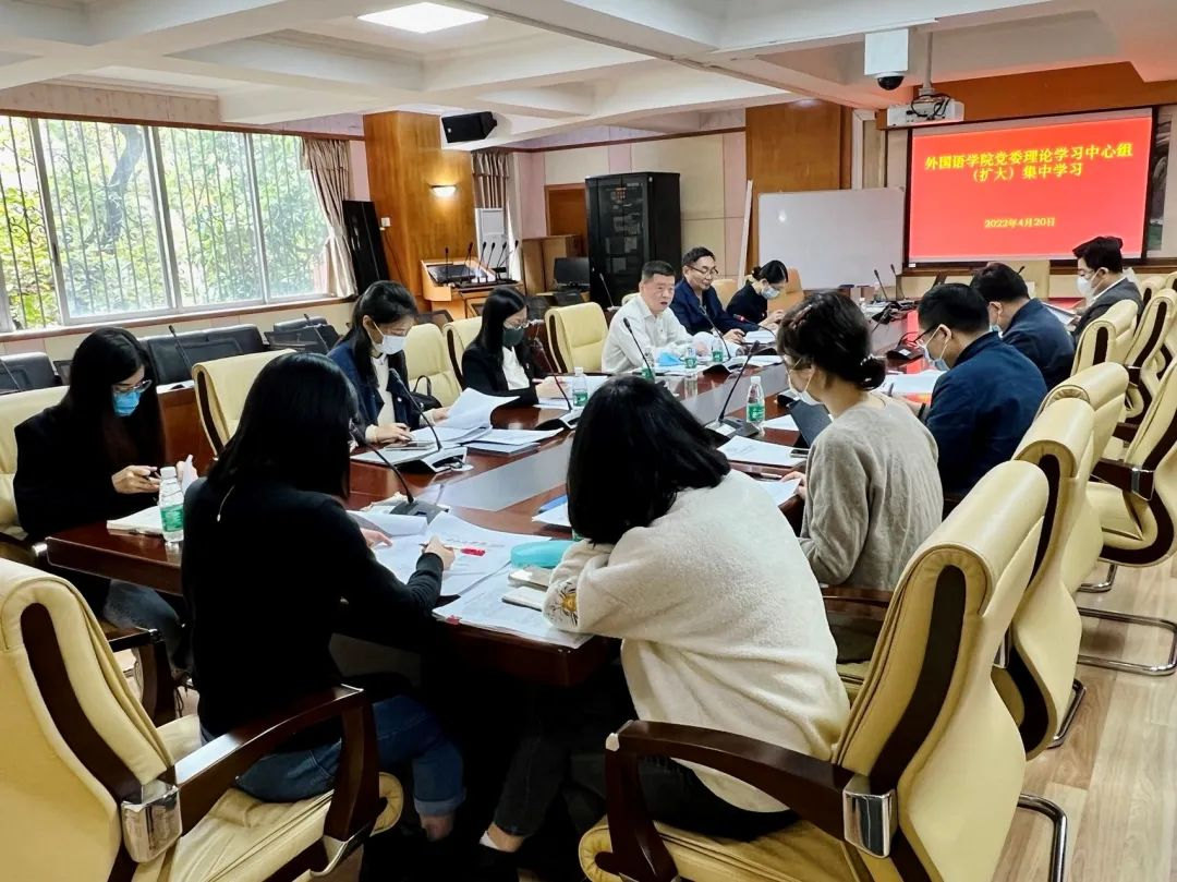 4月20日上午,外国语学院党委理论学习中心组举行扩大会议,结合《304永利2022年4月二级党组织理论学习中心组学习和党支部组织生活要点》,重点学习了习近平总书记在中央政治局常委会会议、北京冬奥会冬残奥会总结表彰大会、中央全面深化改革委员会第二十四次会议等的重要讲话精神。党委理论学习中心组成员、全体班子成员、院长助理、师生党支部书记等出席会议。会议由学院党委书记黄山主持。