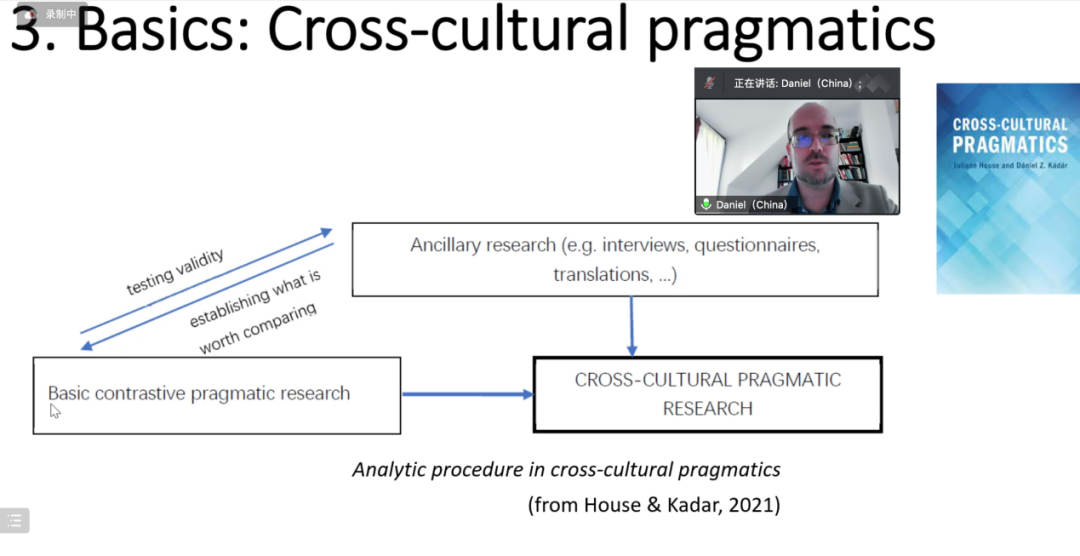 匈牙利国家科学院Daniel Kadar教授的报告围绕关键词“跨文化语用模型“(intercultural pragmatic modal)展开。Kadar教授首先系统讲解了什么是跨文化语用模型。该模型是基于语言证据,通过自下而上的方式全面分析跨文化语言使用的新理论探索。Kadar教授进一步阐述了这一模型的解释力。该模型以语料库中的语言证据为基础,使语言学家在不受个人意识形态预设和信仰影响的情况下分析跨文化交际现象。最后,Kadar教授以19世纪以来中美两国的外交话语语为案例,聚焦跨文化语用模型对外交话语中的礼貌性和攻击性现象的阐释。Kadar教授流利的中文和引人入胜的案例,使听众对跨文化语用模型产生了深厚的兴趣。
