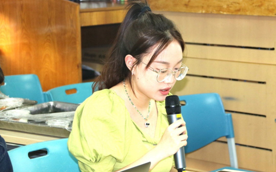研究生会骨干代表韩怡然同学重点汇报“职问三千”就业分享会的开展情况。她提到,本次活动采用系列专题分享会的形式,针对不同就业领域采取多样化展现方式,使同学们直观了解各行业就业现状,真正做到“解同学之困”。下一步,研究生会成员将通过各种活动提升组织内部凝聚力和向心力,并进一步深入挖掘研究生群体所需,让研究生群体能够在活动中有所提升和收获。