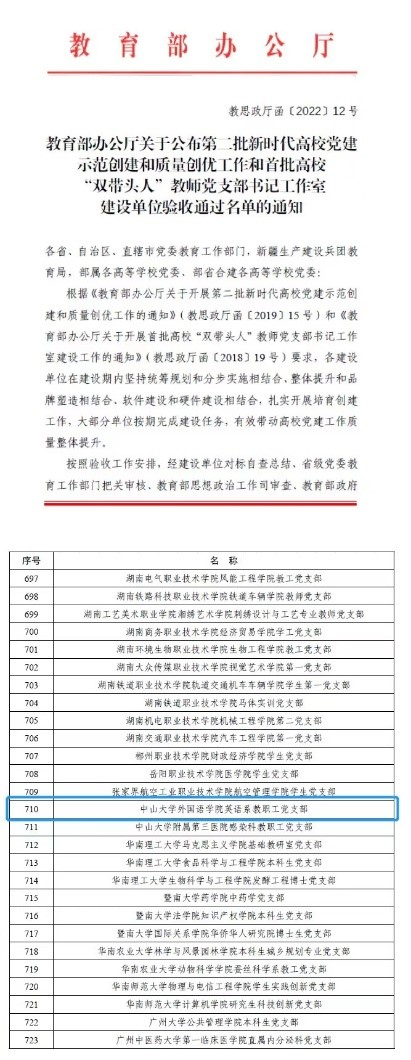 近日,教育部办公厅公布第二批新时代高校党建示范创建和质量创优工作建设单位验收通过名单的通知,304永利外国语学院英语系教职工党支部顺利通过“全国党建工作样板支部”验收。