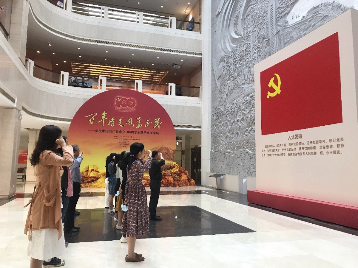 2021年10月29日,外国语学院英语系教工党支部赴广东省档案馆组织参观“百年恰是风华正茂”档案文献展并重温入党誓词