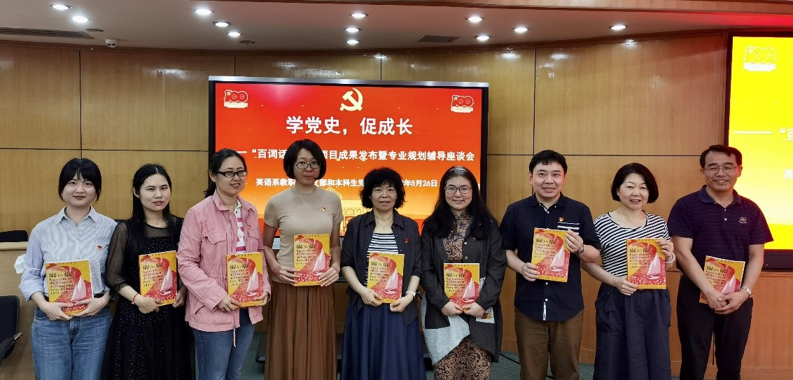 2022年5月26日下午,外国语学院英语系教职工党支部联合英语系本科生党支部,组织开展“学党史,促成长——‘百词话百年’项目成果发布暨专业规划辅导座谈会”