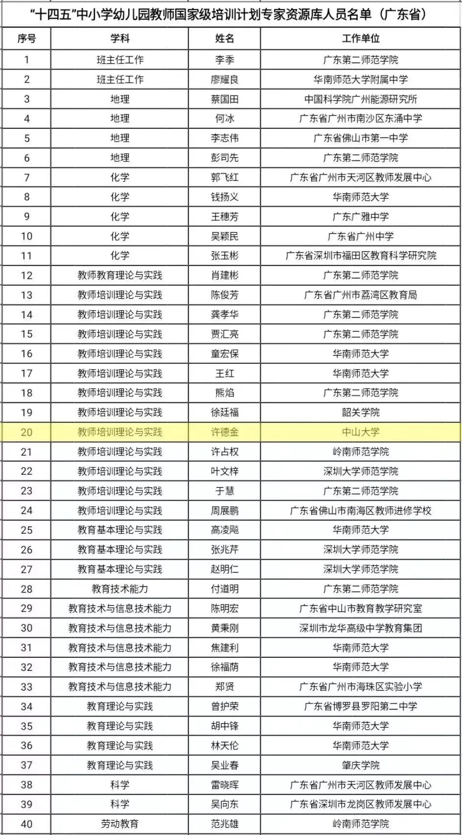 “十四五”中小学幼儿园教师国家级培训计划专家资源库人员名单