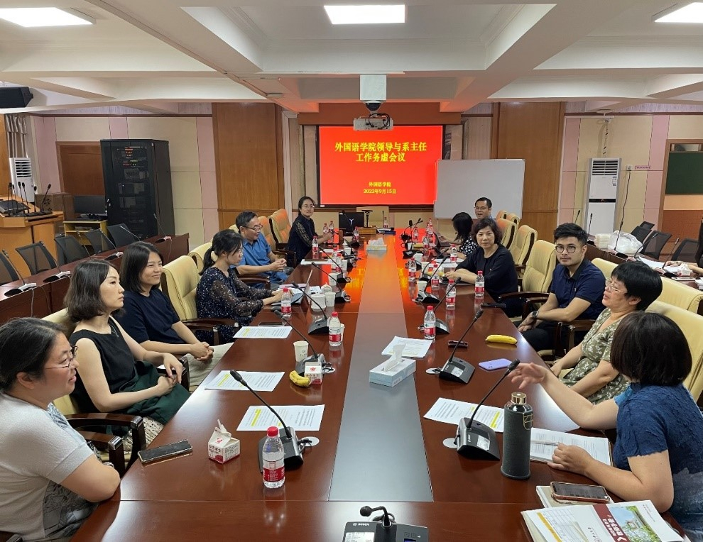 于海燕书记指出,作为外国语学院,我院要以“高水平对外开放”为理念,充分展示外语专业和学科建设特色,加强国际合作交流,更好地推动中华文化走出去。希望各系(中心)积极推进与国(境)外高校的交流合作工作,为学生成长发展提供更好更多的平台。