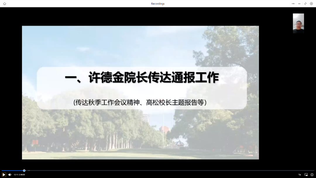 与会教职工表示,要认真学习贯彻学校秋季工作会议精神,切实承担起人才培养主体责任,将“以学生成长为中心,培养全面发展、引领未来的人”落实到具体行动上,为提高学院及学校的人才培养质量及高质量内涵式发展作出自己的贡献。