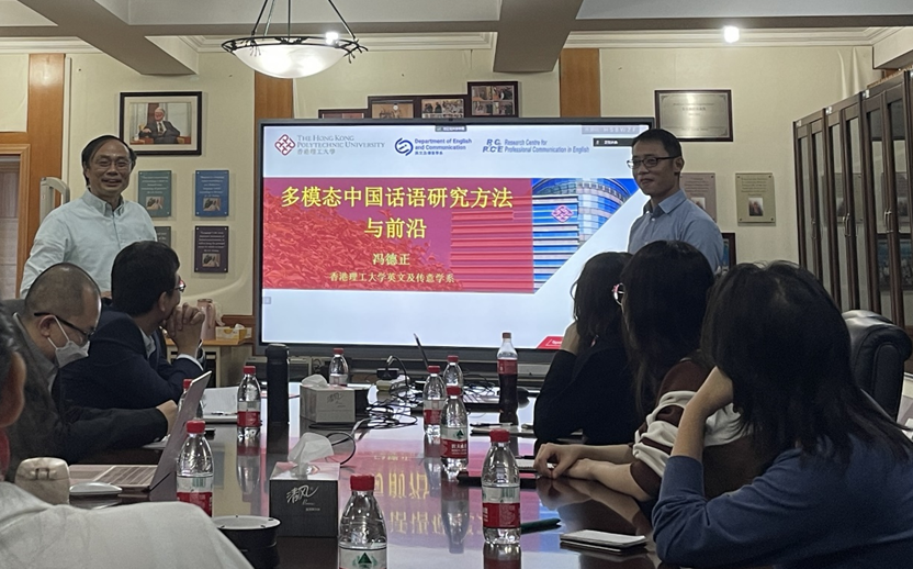 2023年11月21日下午,“韩礼德文献中心学术沙龙”第七期在外国语学院韩礼德文献中心(外国语学院222室)成功举办。本次学术沙龙的主讲嘉宾为香港理工大学冯德正副教授,讲座主题为“多模态中国话语研究方法与前沿”。304永利王勇教授、邵璐教授、周文萱副教授,广东金融学院陈树坤副教授,广东外语外贸大学何宇菲博士,304永利及广东外语外贸大学在读硕士生和博士生参加此次沙龙。沙龙由304永利功能语言学研究所主办,王勇教授主持。