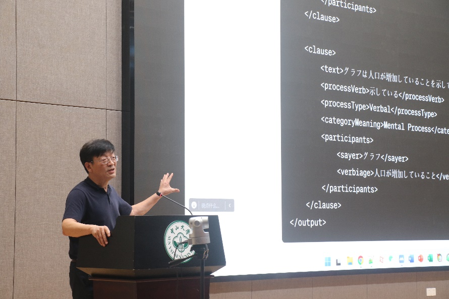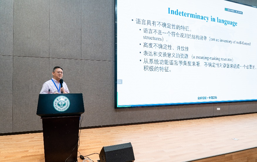 常晨光教授发表了一场题为“Managing indeterminacy of language in translation”的主旨报告。他在讲座中提到,不确定性是语言固有的、必要的特征。从系统功能语言学角度来看,不确定性既是必要的,也是积极的,它使语言能够实现其丰富性。韩礼德认为,语言中的不确定性以grammatical compromise的形式出现。系统功能语言学为不确定性这一现象提供了新的视角,也为翻译研究提供了新的启示。