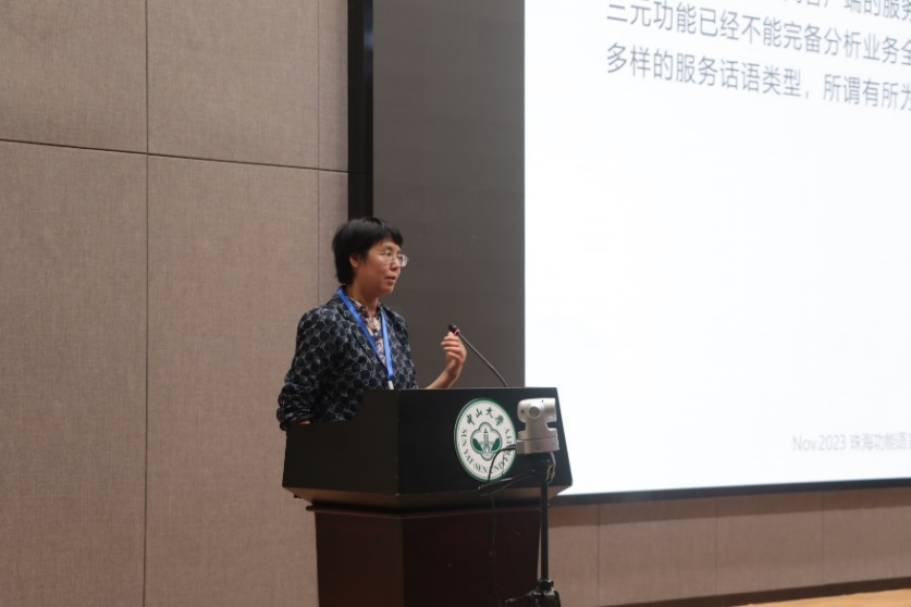 于晖教授分享了一场题为“功能语法与型式语法界面研究”的报告,提出界面研究指两个或两个以上学科领域共同影响和制约并合力探讨某一语言现象的活动或过程。功能语法从社会学角度出发,把语言看作是一种资源。这一资源在形式上是一个巨大的系统网络,它代表了人们语言行为的所有可能性,即语言行为潜势。而人们日常的言语行为正是现实化的潜势。每一个系统就是在特定环境下可供人们选择的一组可能性。系统不仅仅是一个可能性系统,也是一个盖然率系统,盖然率的概念丰富了系统语法的理论体系。语言研究时不仅要做定性的分析,也要进行定量分析。而型式语法是由 Sinclair、Francis、Hunston 等人基于 COBUILD 项目在语料库语言学研究范式下发展起来的一种英语语法描写模式。型式语法认为语言的形式与意义相联系,并且词汇与语法不可分割,这些与功能思想以及功能“语法学家的梦想”契合。她尝试从理论和实践深入探讨功能语法与型式语法的相互交叉、相互影响、相互制约、相互融合。