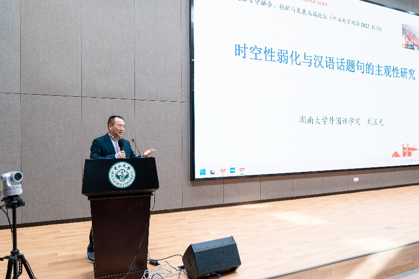 刘正光教授分享了一场题为“时空性弱化与话题句的主观性研究”的讲座。他在报告中指出,过往的研究并没有关注话题构式的主观性特征的本质意义及其来源。他从话题的空间性、述题的时间性的维度阐释时空性与汉语话题构式主观性的内在关联,把时空性视为一个由弱到强的连续体。话题的空间性越弱、述题的时间性越弱,该构式表达的主观性越强。