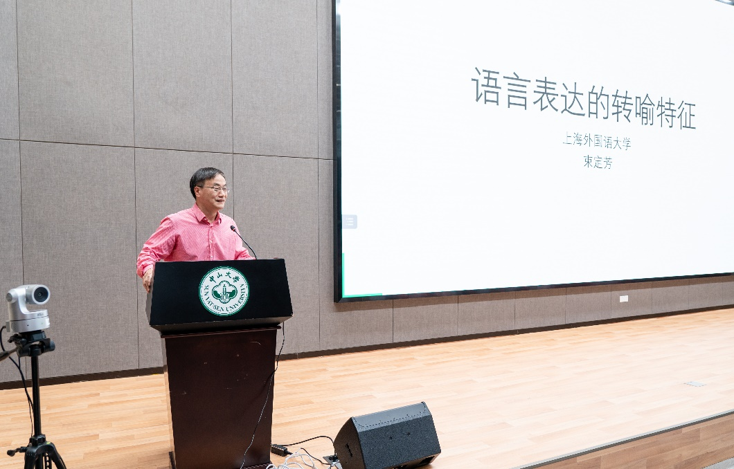 束定芳教授分析了语言表达的转喻性。他指出,转喻是一种以此概念表达彼概念的手段。转喻可以是词语,可以是句子,也可以是言语行为。大部分的间接表达或者间接言语行为都是转喻。语言表达概念。概念系统是多模态的、立体的。语言表达是线性的。语言的表达具有选择性、模糊性、经济性的特征。这些特点实际上就是转喻的特征。