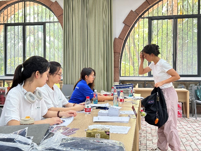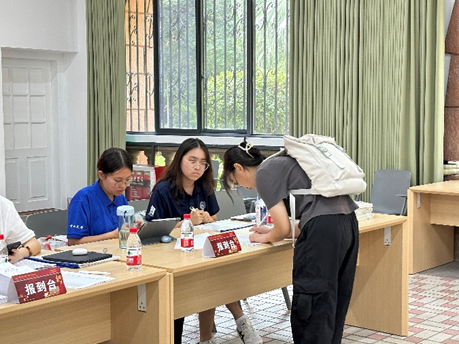 八月底,外国语学院2024级新生报到,迎新工作顺利开展。百年校庆之际,我院迎来87名本科生新生。在志愿者的协助下,新生及家长们来到外国语学院一楼校友之家完成签到流程,并与在旁的院领导和辅导员就开学事项进行交流,最后新生们与家长怀揣希望和期许在签名墙前拍照留念,记录下整装待发、奔赴下一场学海的时刻。