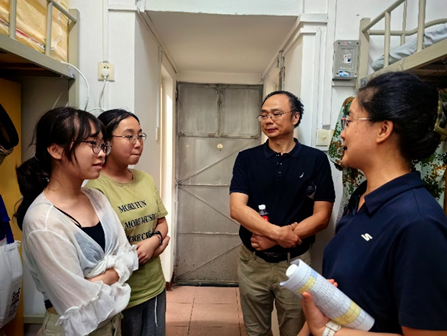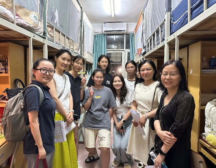 外国语学院的各位领导们和辅导员走访了新生宿舍,与同学们进行了亲切愉快的交流。老师们亲切询问了新生们对大学生活的适应情况,向他们初步介绍专业情况,并鼓励他们遇到问题可以向学院老师和学长学姐们请教。同学们表示感受到了外院大家庭的无微不至的温暖与关怀,对即将到来的学习与生活充满好奇和期盼。