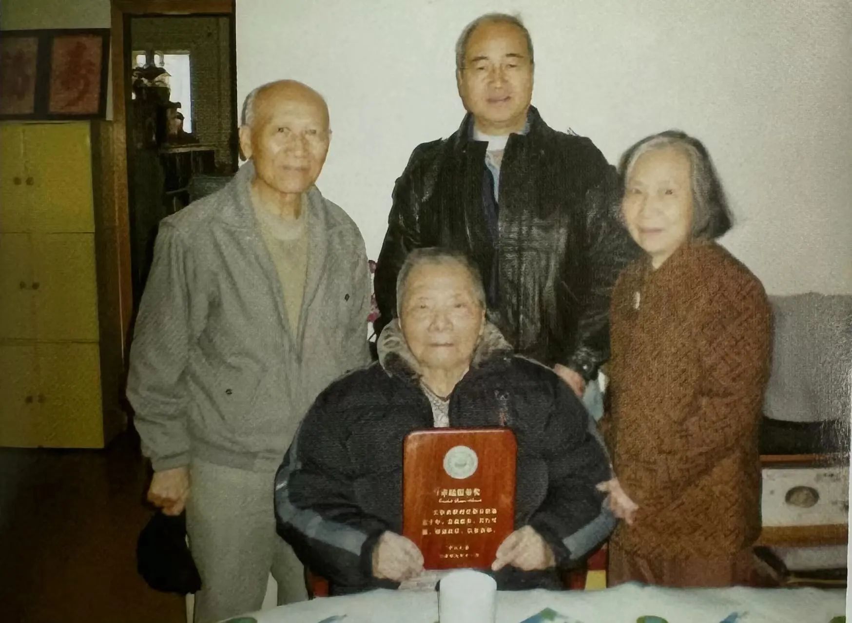 作者(左一)与龚少瑜教授、黄家佑教授2010年元旦看望王宗炎教授