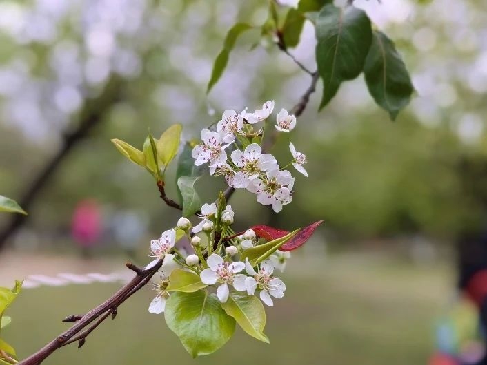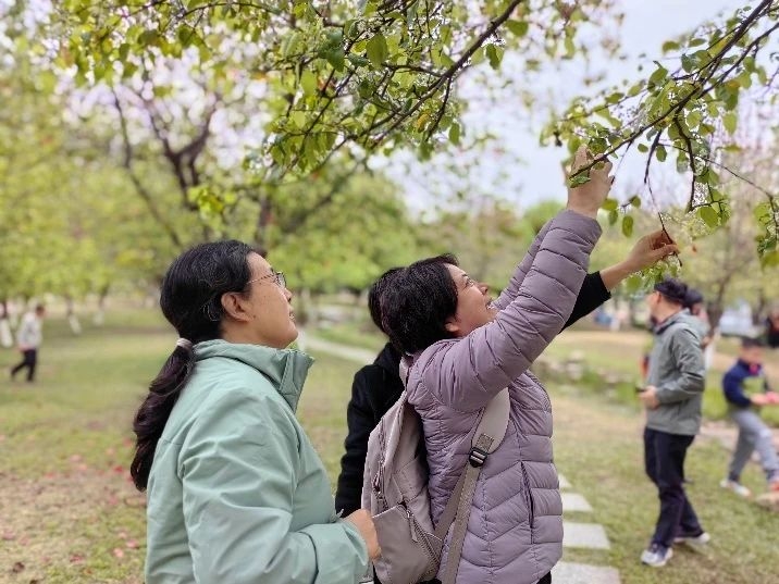 随后,大家乘车前往肇庆,来到了七星岩牌坊公园梨花观赏地。“一树梨花一树春,满树春色醉游人”。虽然近期雨水打落了些许花瓣,散落在地上的花瓣仍散发着淡淡的香气,而树梢上争奇斗艳的梨花很快就吸引了大家驻足、观赏、打卡,小心翼翼拨开树叶,用相机定格下淡雅高洁的梨花之美。