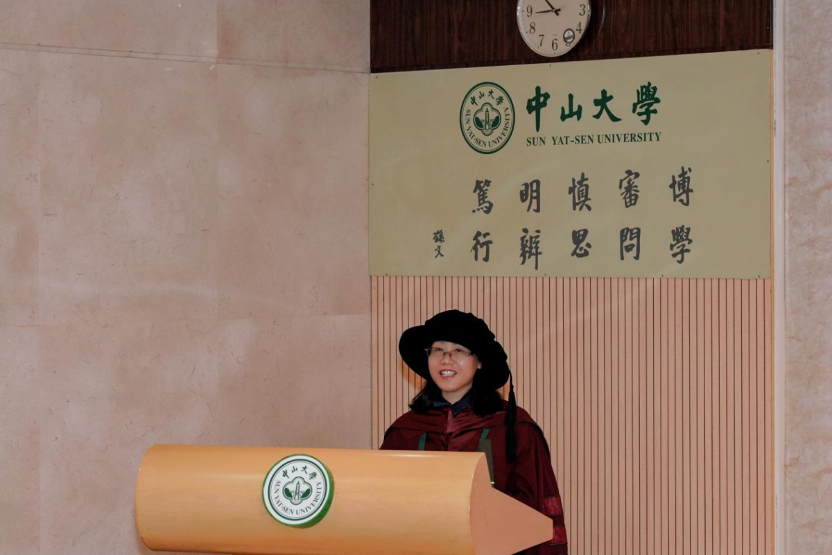 导师代表杨劲主任在毕业发言中指出,在AI时代冲击下,外语人的价值在于具备AI无法替代的“元能力”,包括国际化视野、跨文化沟通力、审美判断力、人文情怀及创造力等。杨劲主任以“忆、情、心、气”四字寄语毕业生:“忆”是康乐园求学时光的点滴记忆,“情”为师生同窗情谊与亲情友爱,“心”需如冯至诗句所言超越小我、胸怀广阔,“气”则是保持朝气锐气、自信开拓的气度。她引用歌德《浮士德》中的名言,鼓励毕业生在辽阔人生中持续探索创新,兼具守旧迎新的智慧。最后,杨劲主任祝福毕业生无论走向何方,皆能心之所向,以所学所长在世界舞台展现担当,以兼容并蓄的姿态拥抱未来,在时代征程中绽放光彩!