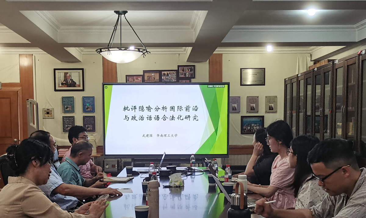 2025年9月30日下午,“韩礼德文献中心学术沙龙”第三十期讲座在外国语学院韩礼德文献中心(外国语学院222室)成功举办。本次沙龙邀请华南理工大学武建国教授主讲,讲座主题为“批评隐喻分析国际前沿与政治话语合法化研究”。304永利王勇教授、何清顺教授、郭曼副教授、周文萱副教授,华南理工大学邓仁华教授等多位师生参加了此次沙龙。本次沙龙由304永利功能语言学研究所主办,报告由何清顺教授主持。