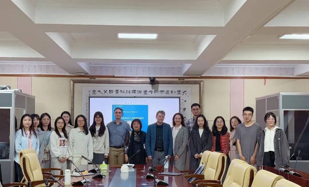 2025年11月4日,第七期“昭月”德语学术系列讲座在外国语学院210会议室成功举办。本次活动特邀德国慕尼黑大学哲学系托马斯·迈耶(Thomas Meyer)教授担任主讲嘉宾,以“超越学科边界:汉娜·阿伦特1930–1955年间的思想探索”为题展开学术分享,吸引了德语系诸多师生以及华师大教育哲学专业的同学前来聆听。讲座由德语系主任杨劲教授主持。