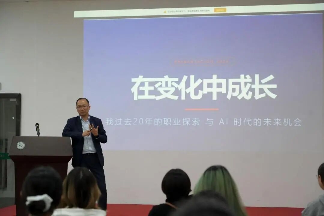 面对人工智能对外语专业的冲击,徐晶波校友以自身近20年深耕中德经贸合作的经验为例,深入剖析了AI时代的职业应对之道。他指出,尽管AI翻译已具备较高水平,但行业经验所形成的判断力、跨文化沟通能力及问题解决能力,仍是技术难以替代的核心竞争力。他提出复合型人才、国际化视野、终身学习三大发展方向,勉励同学们主动掌握AI工具,将技术转化为助力,而非被动应对变革。